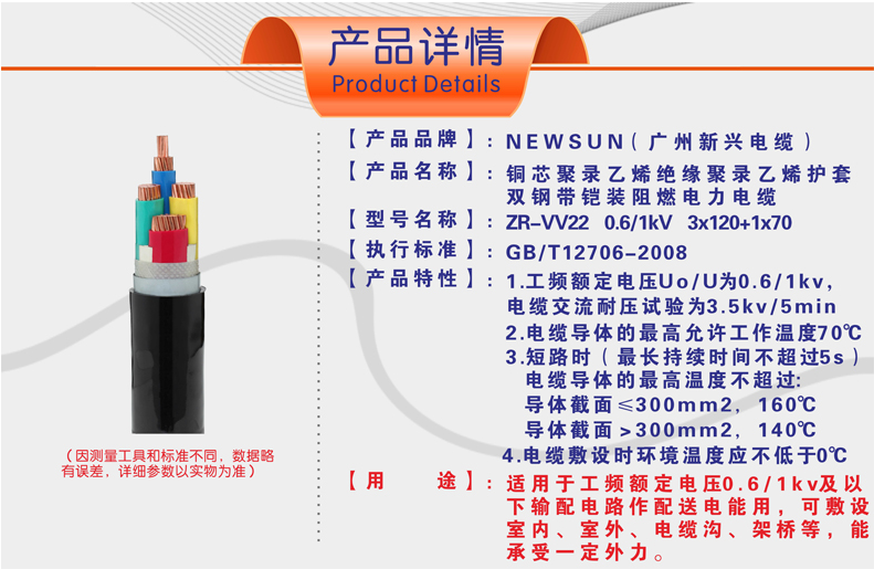 【產(chǎn)品名稱】銅芯聚錄乙烯絕緣聚氯乙烯護(hù)套雙鋼帶鎧裝阻燃電力電纜
